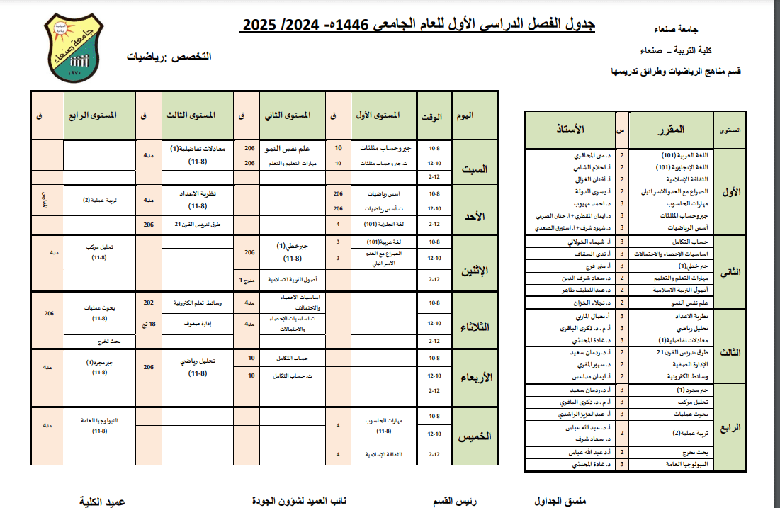 بسم الله الرحمن الرحيم اعلان مهم : تعلن عمادة كلية التربية صنعاء عن بدء الدراسة للعام الجامعي 1446ه الموافق 2024/2025 وذلك من يوم غد الاثنين 2/محرم/1446ه الموافق 8/ يوليو/ 2024 م ووفقا للجدول المعلن والتقويم الجامعي. فعلى الجميع الالتزام . …