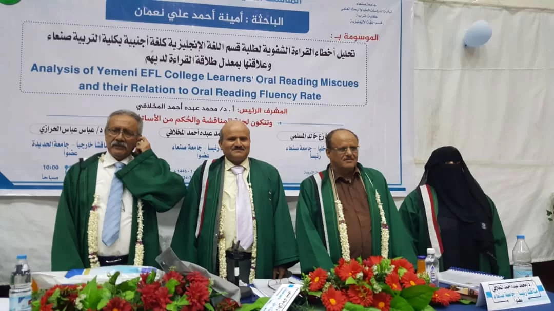 جامعة صنعاء كلية التربية-صنعاء قاعة: الشهيد الصماد اليوم: الاربعاء التاريخ: 4 محرم 1446 هجرية الموافق: 10 يوليو 2024 الفعالية: مناقشة علمية الدرجة: ماجستير التخصص: لغة انجليزية الطالبة: أمينة احمد علي نعمان عنوان الرسالة: (تحليل اخطاء القراءة الشفوية لطلبة قسم اللغة …
