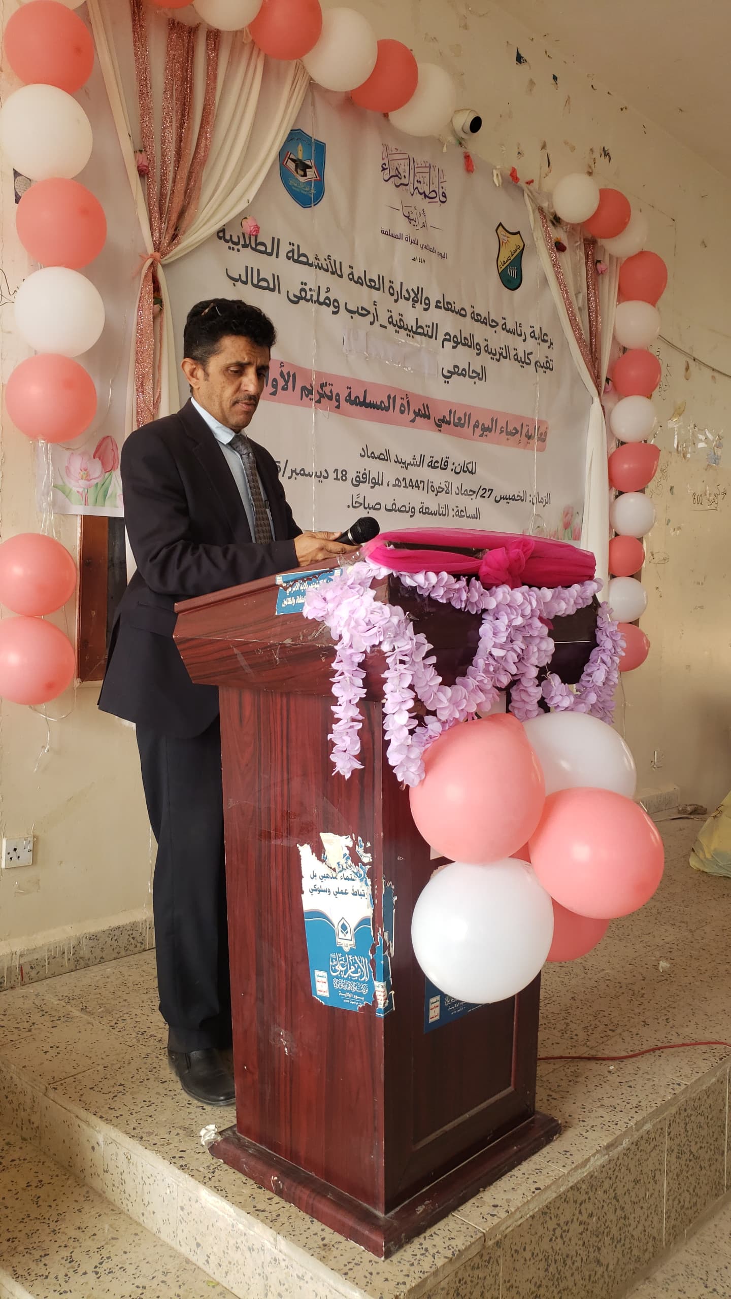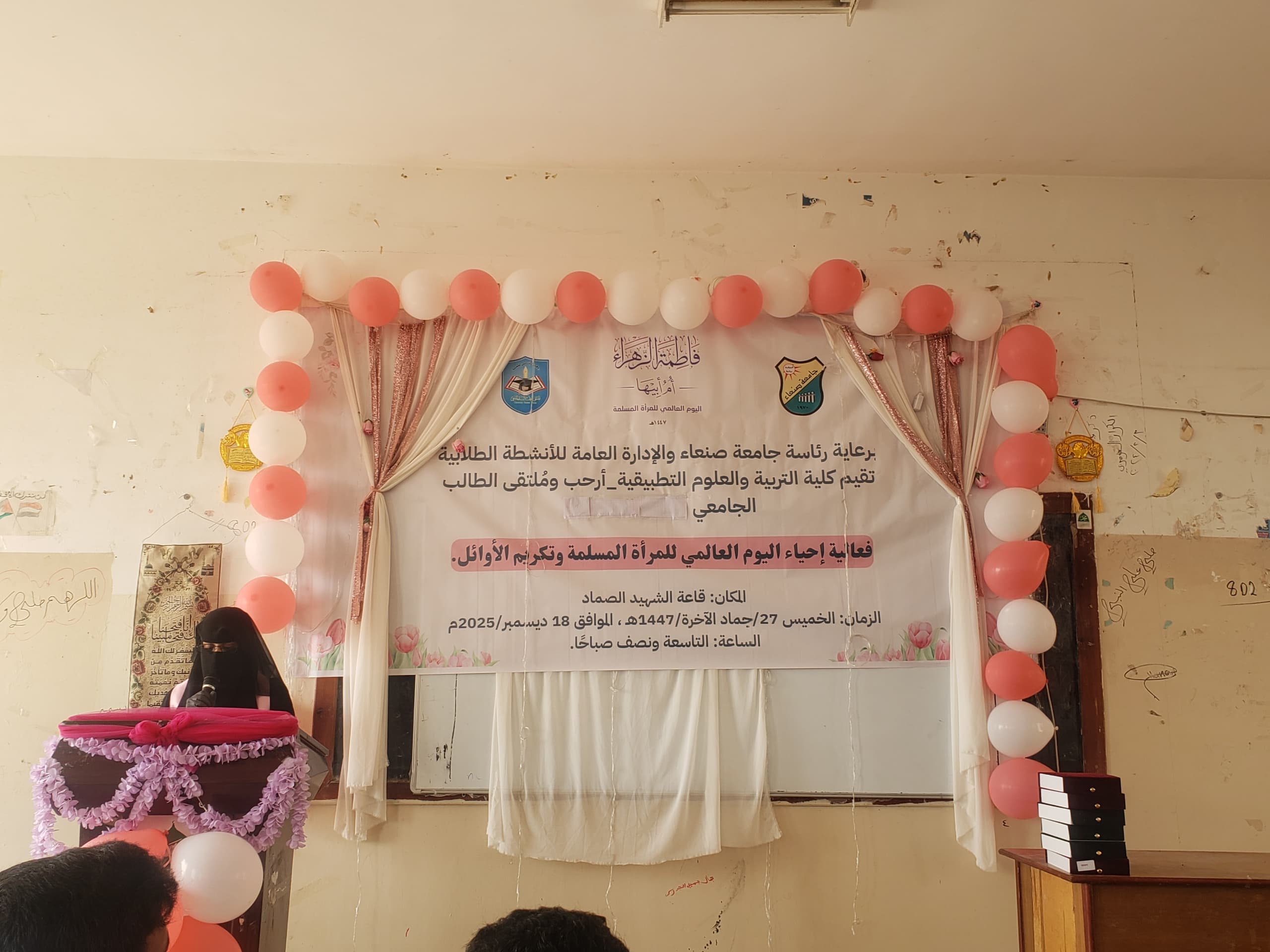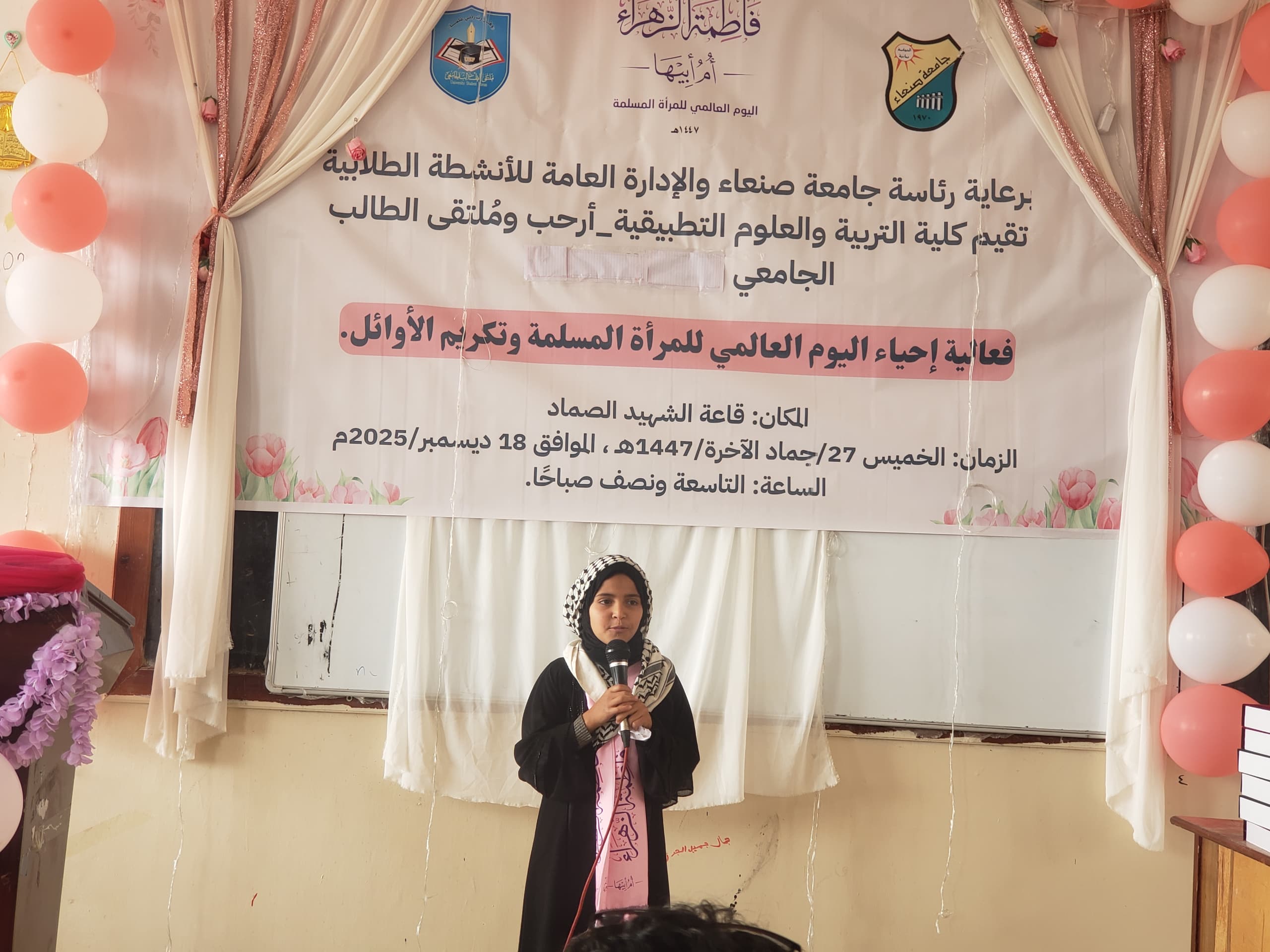 برعاية رئاسة جامعة صنعاء والإدارة العامة للأنشطة الطلابية، أقامت كلية التربية والعلوم التطبيقية – أرحب، بالتعاون مع الملتقى الطلابي الجامعي (قطاع الطالبات)، فعالية إحياء اليوم العالمي للمرأة المسلمة وتكريم الأوائل، تحت عنوان: