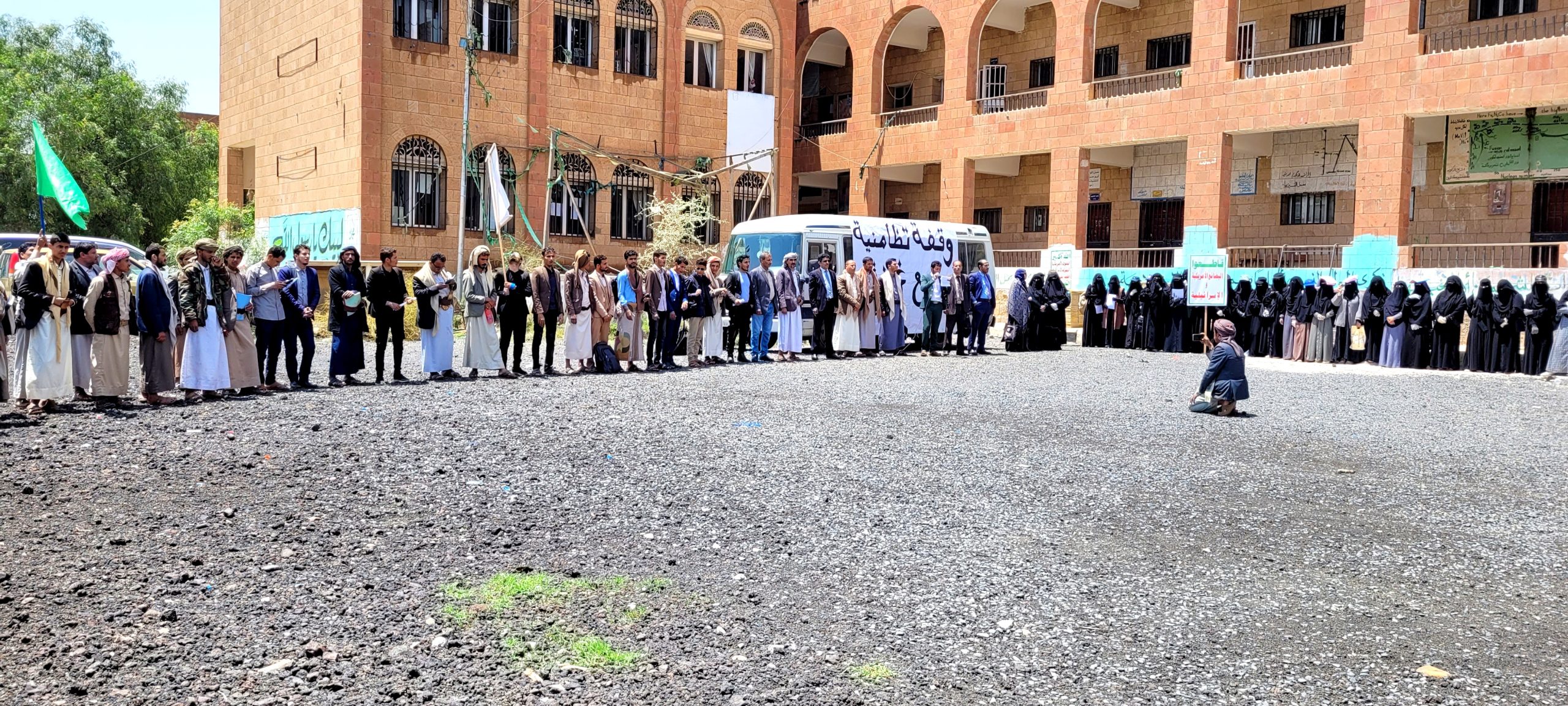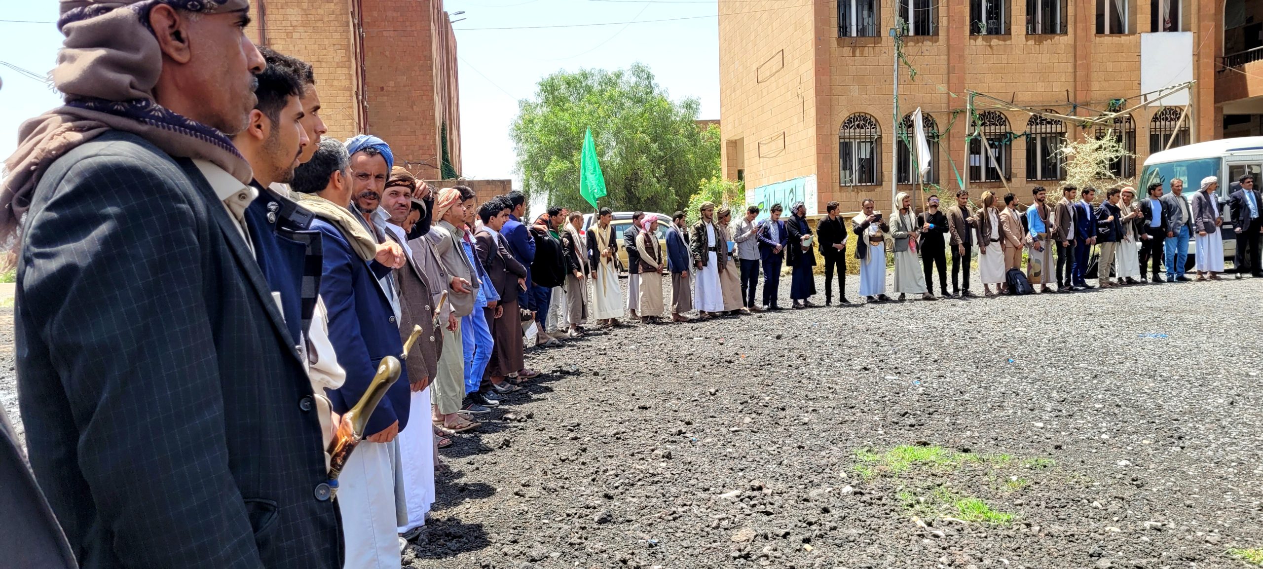 أُقيمت اليوم بكلية التربية والعلوم التطبيقية – أرحب، وقفة تضامنية مع الشعب الفلسطيني في غزة، وذلك بمشاركة عميد الكلية الدكتور/ محسن الدربي، إلى جانب أعضاء الهيئة الأكاديمية والإدارية وطلاب الكلية.