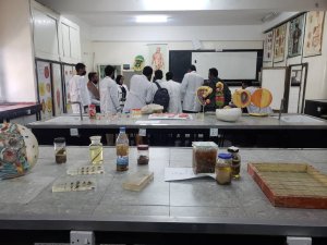 وهدفت الرحلة إلى تعريف الطلبة بالأجهزة العلمية الحديثة المتوفرة في كلية العلوم، والاطلاع على آليات استخدامها،والمجسمات وعينات محفوظة لكائنات حية مختلفة وعينات محنطة وطريقة التحنيط وتم فحص عينات للطفيليات والحبليات بالميكرسكوب ،وكان الختام بتشريح الطلاب للحمام مع إشراف الأستاذ عليهم.