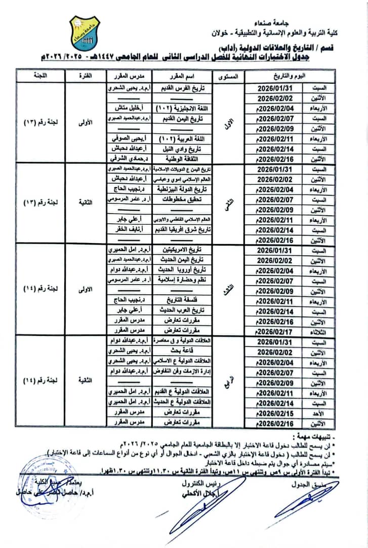 كلية التربية والعلوم الإنسانية والتطبيقية – خولان تحدد موعد اختبارات الفصل الدراسي الثاني صنعاء – أعلنت كلية التربية والعلوم الإنسانية والتطبيقية – خولان بجامعة صنعاء عن بدء اختبارات نهاية الفصل الدراسي الثاني للعام الجامعي 2025/2026، والمقرر انطلاقها يوم السبت الموافق …