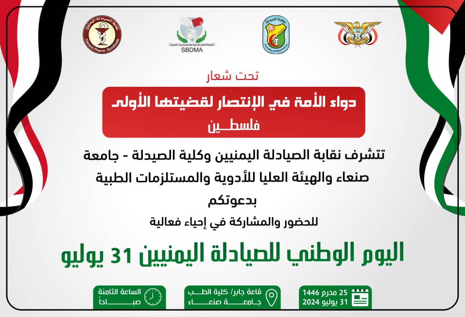 الإربعاء،25 شعبان 1445هـ الموافق 6 مارس 2024م برعاية كريمة من رئاسة جامعة صنعاء أقامت كلية الصيدلة وملتقى الطالب الجامعي اليوم حفل تكريم الطلبة الفائزين بمسابقة طوفان الأقصى العلمية بمختلف المستويات الدراسية وكذلك فريق كلية الصيدلة لكرة القدم الحاصل على المركز …