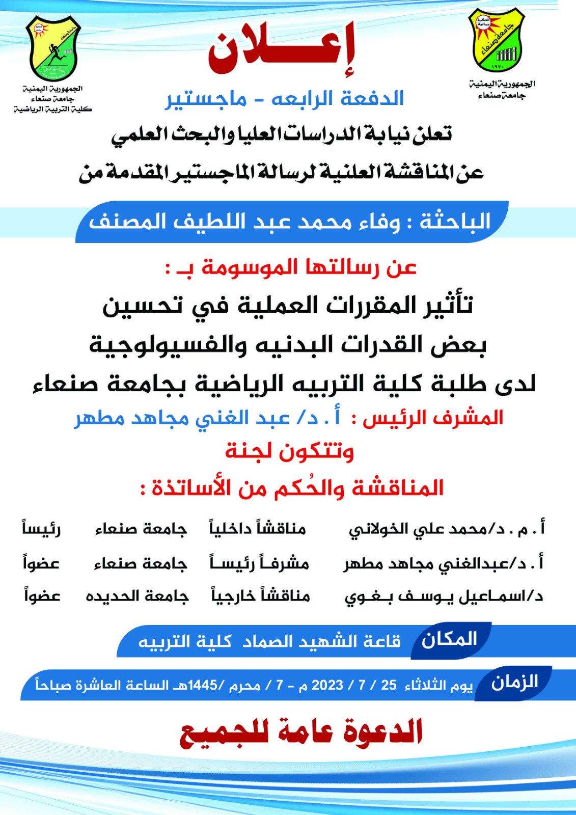 تأثير المقررات العملية في تحسين بعض القدرات البدنية والفسيولوجية لدى طلبة كلية التربية الرياضية بجامعة صنعاء