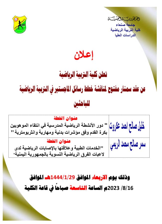 كلية التربية الرياضية تعقد سمنار مفتوح لمناقشة خطط رسائل الماجستير في التربية الرياضية