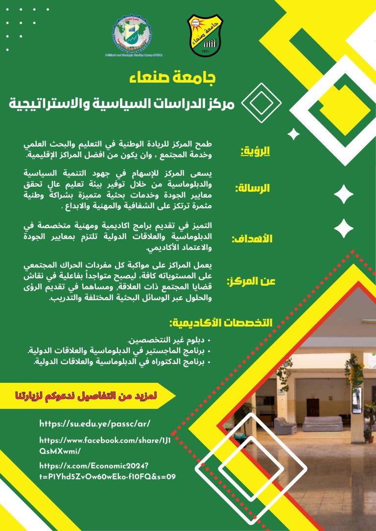 The Political and Strategic Studies Center at Sana'a University is pleased to invite you to visit the center's website and social media pages to stay updated on the latest news by scanning the QR code.