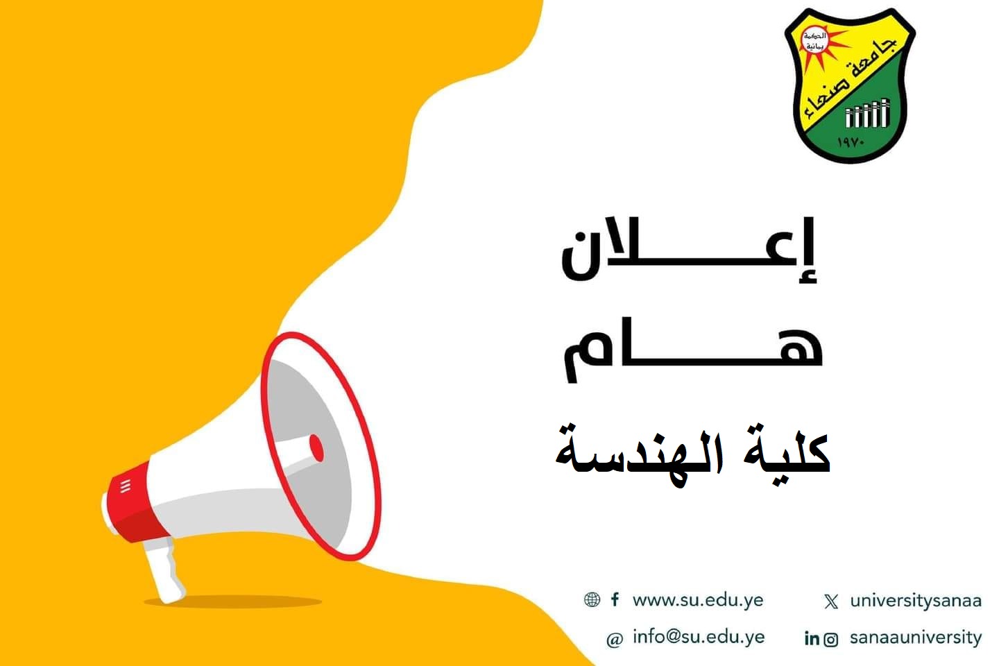 تعلن نيابة رئاسة الجامعة لشؤون الطلاب بجامعة صنعاء لجميع ابنائنا …