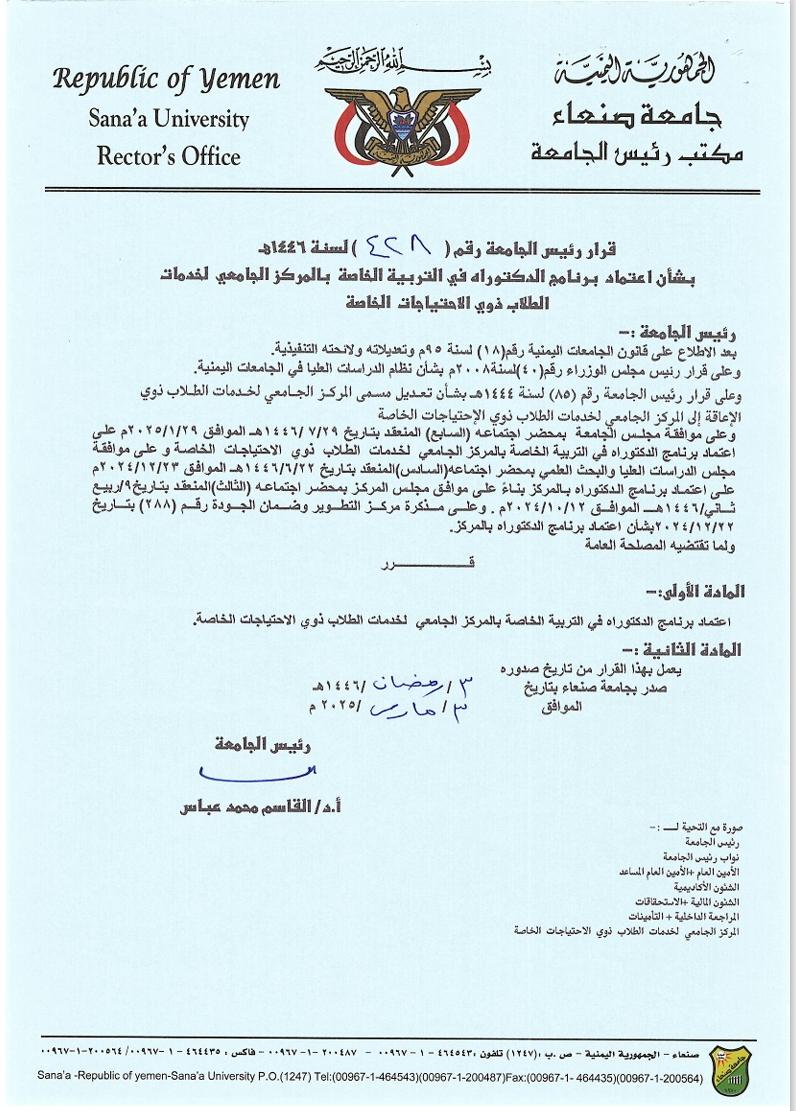 اعتماد برنامج الدكتوراه في التربية الخاصة بالمركز الجامعي لخدمات الطلاب ذوي الاحتياجات الخاصة Posted by su_73_uscssn التصنيفات الأخبار Date أبريل 13, 2025 Share: su_73_uscssn المقال السابق الماجستير للباحثة آسيا يحيى أحمد منصور من قسم التربية الخاصة بالمركز الجامعي لخدمات الطلاب ذوي الاحتياجات الخاصة أبريل 13, 2025 المقال التالي إقامة فعالية بمناسبة انتهاء الفصل الدراسي الثاني للعام 1446هـ يونيو 2, 2025 You may also like مساعد رئيس الجامعة لشؤون الإعلام يلتقي قيادة المركز الجامعي لخدمات الطلاب ذوي الاحتياجات الخاصة 16 فبراير, 2026 مناقشة أول خطتي بحث ماجستير لطلاب من ذوي الإعاقة الحركية بمركز خدمات الاحتياجات الخاصة 8 فبراير, 2026 الماجستير للباحثة أمل حسن الزبيري في التربية الخاصة 18 يناير, 2026