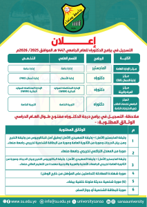 فتح باب التنسيق والقبول للالتحاق ببرامج الدكتوراه للعام الجامعي 1447هـ الموافق 2025–2026م