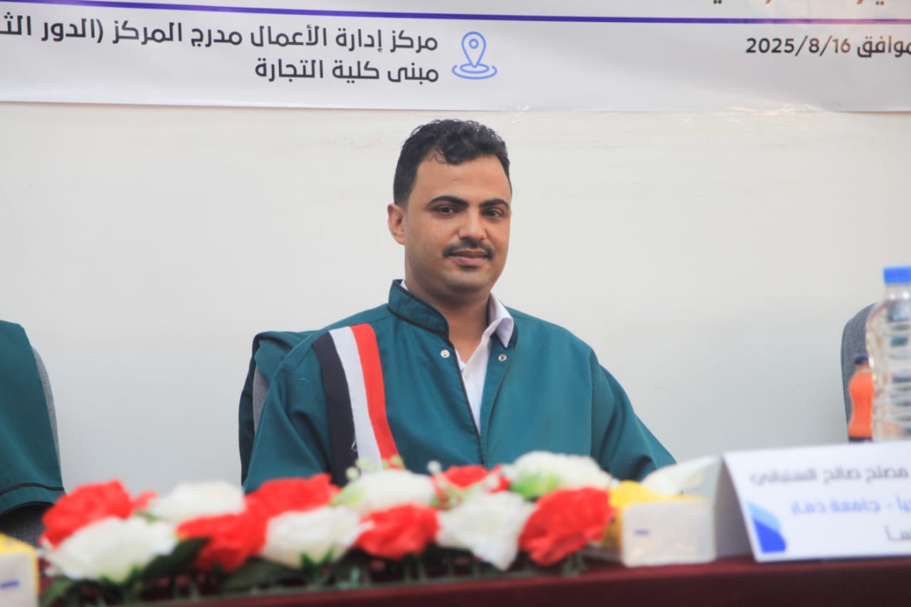 نال الباحث صلاح جميل شائف العريقي درجة الماجستير في إدارة الأعمال بدرجة 95% بتقدير ممتاز من مركز إدارة الأعمال للدراسات العليا بجامعة صنعاء عن رسالته الموسومة بـ: “أثر سلاسل الإمداد في إدارة مشاريع القطاع اللوجستي لمجموعة شركات العالمية”. يوم السبت …